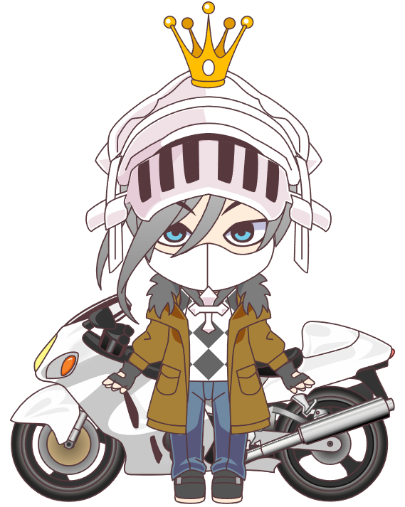 常に王冠をあしらったヘルメット(兜)を身に着けており、白く塗られたバイク『ホワイト・ザ・フューリー』号を駆る。