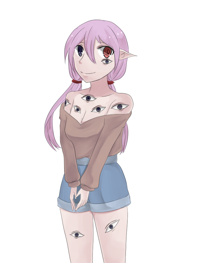 多眼で牙持ち。まあ普通の神様でありサトリ妖怪でもある。
