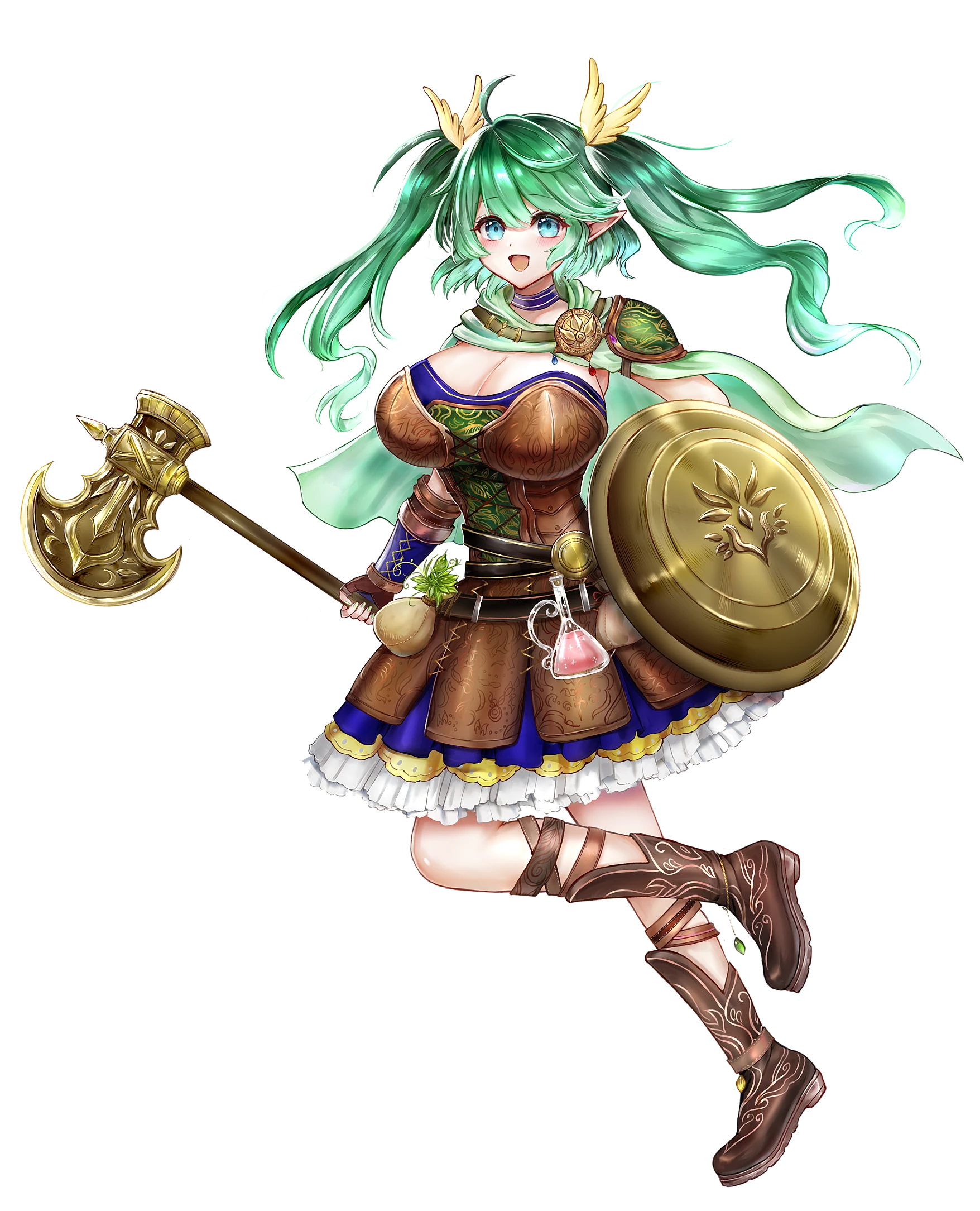 キルヒアを奉じるエルフの里で生まれた。しかし幼少の頃から学問より運動が好きで走り回っており、猪娘(里で猪はおおむね馬鹿の意味)と呼ばれていた。それでも本人はあまり気にせずやはり走り回り、結果、同世代で最も勉学に励んでいた娘と謎のライバル関係となる。