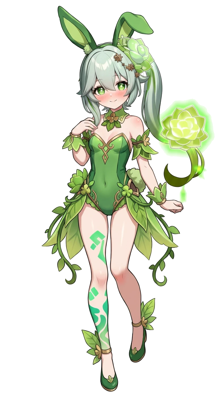太陽の光を浴びると光る様に輝く黄緑色のポニーテールヘアーが特徴的な少女。