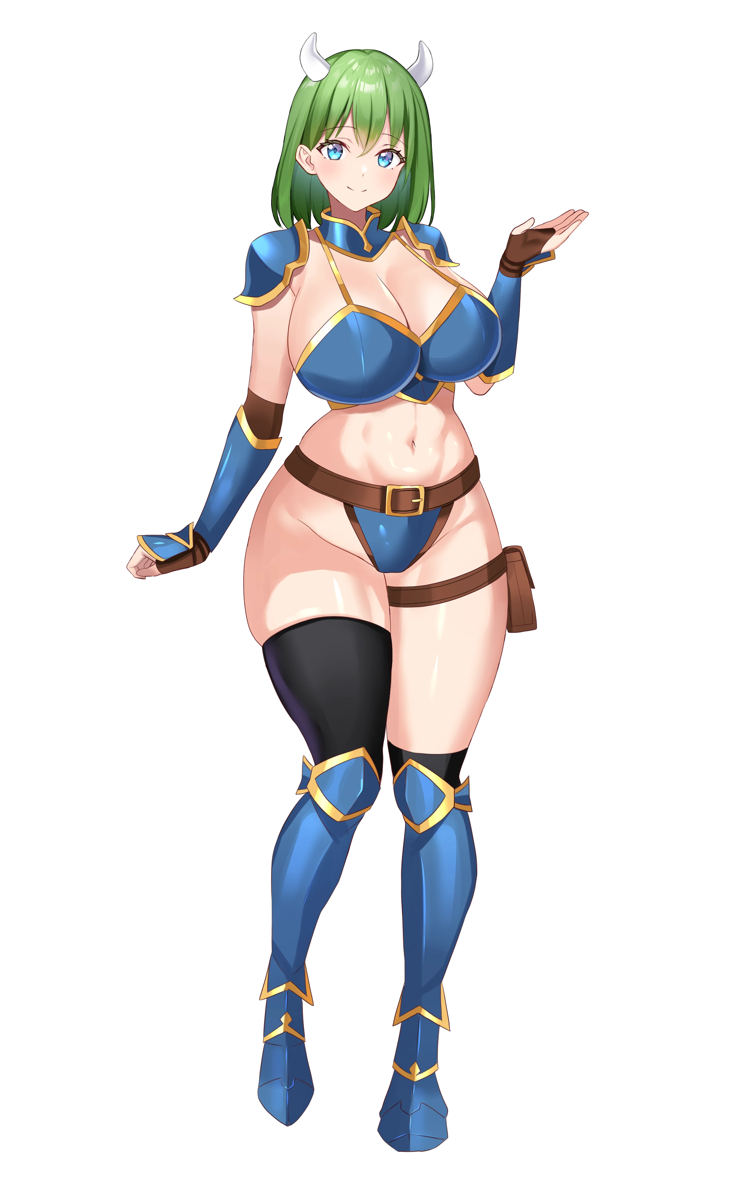 特徴:肩くらいまでのきれいな緑色の髪にいろんなところが大きいのが特徴的。種族的な特徴の角が自慢らしい。