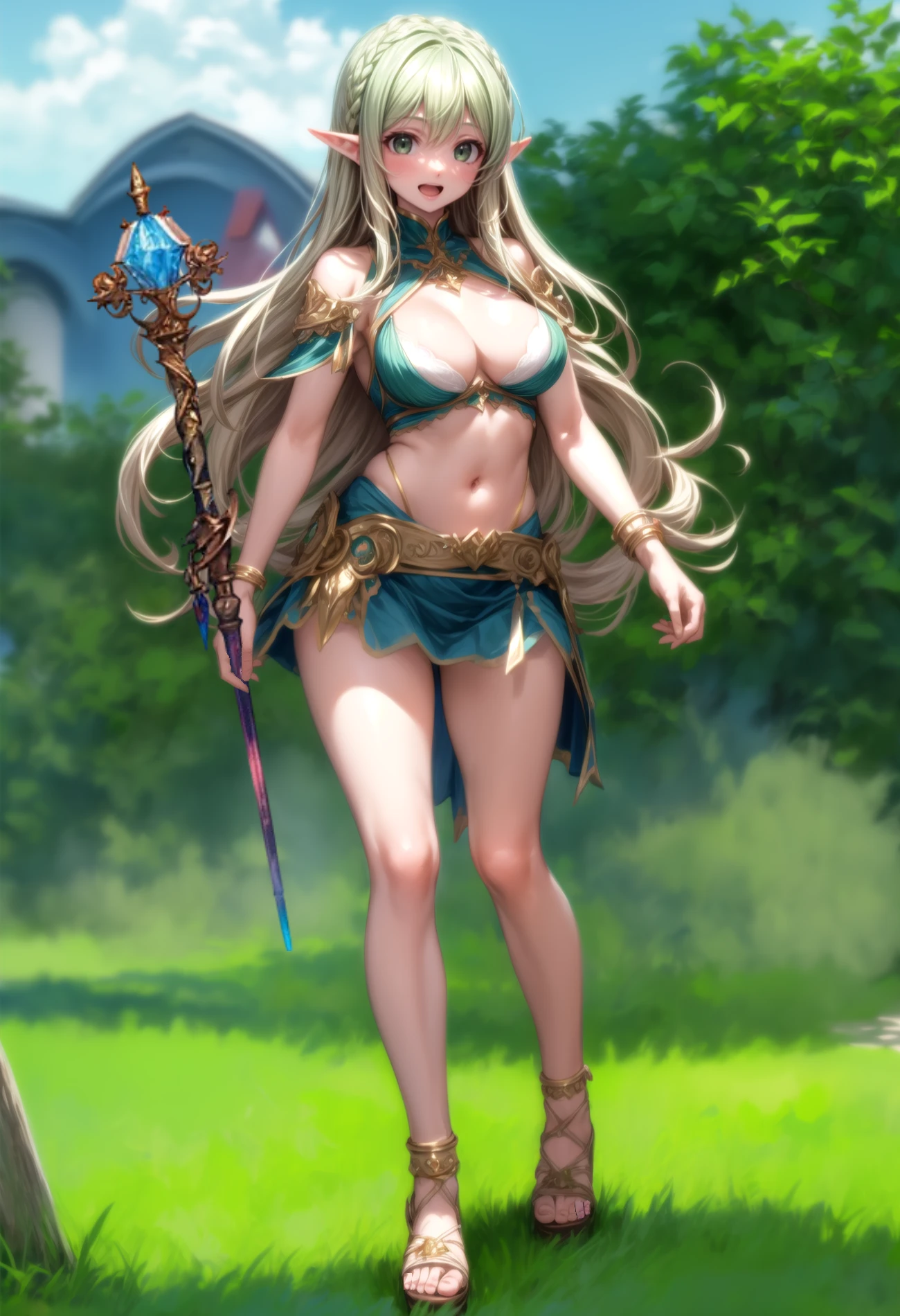 口調や気品、振る舞いだけを見ると、相応にお姫様らしい性格‥‥なのだが、両親が駆け落ちした先のソレイユの村で生まれ育ったせいか、お姫様らしい性格がコミカルに見えるうえに、ソレイユ文化でファッションセンスがソレイユ化してしまい、ミストエルフの母親が元々軽装な衣装を好む種族だったこともあって、普段から露出の多い格好を気にせず身につけ、ソレイユの様に、自分のスタイルに誇りを持っている。えっちな目で見られても気にしない、どころか、自分の魅力の良さの証とまで考えている。最近ちょっとムネの大きさがエルフにしては大きすぎるようになってる気がして、戸惑ってはいるようだが。