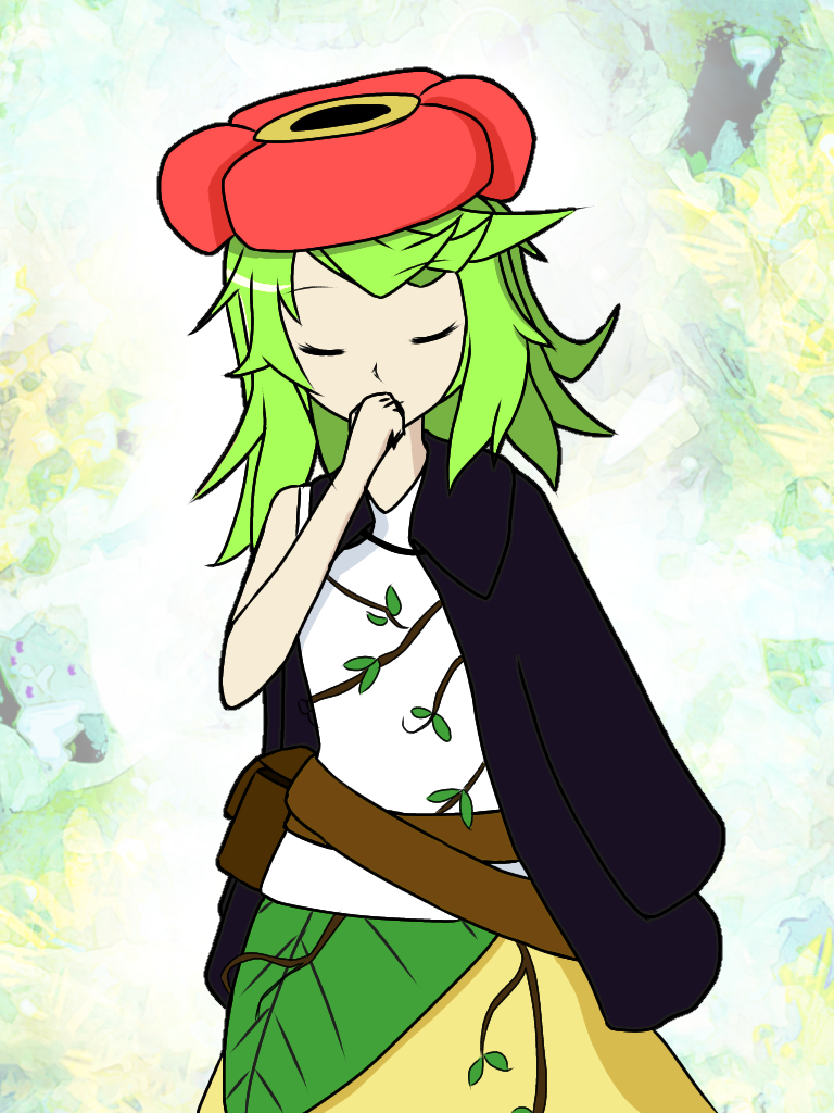 緑髪でいつも目を閉じているように見える華奢な感じ。頭に咲いてる花や体に巻きついてる蔦みたいなのは全部体の一部。