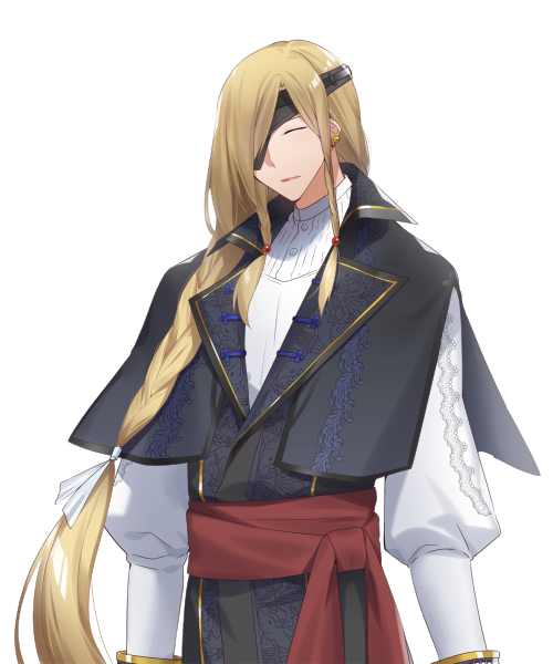 片方の目を布で覆っているが別に目がないとか視力が悪いとかはなく、普通に物を見る時は覆ってる布を剥ぐ。