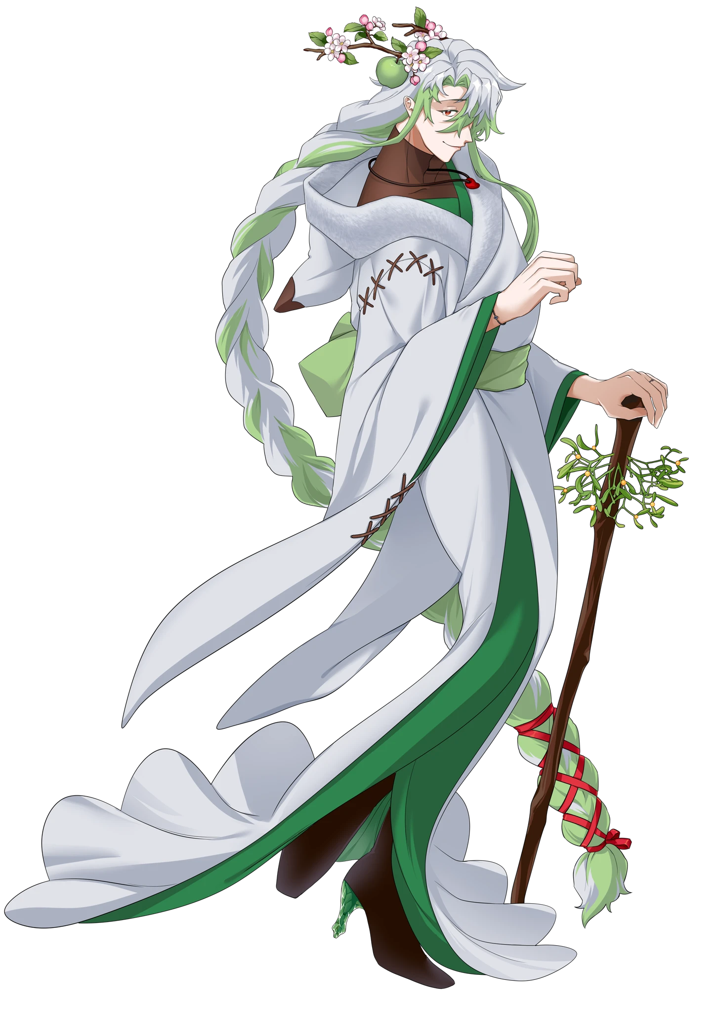 病の後遺症で左脚が痩せ、変色してしまっている。醜い自覚があるため、人には見せないよう丈の長いローブで隠してある。