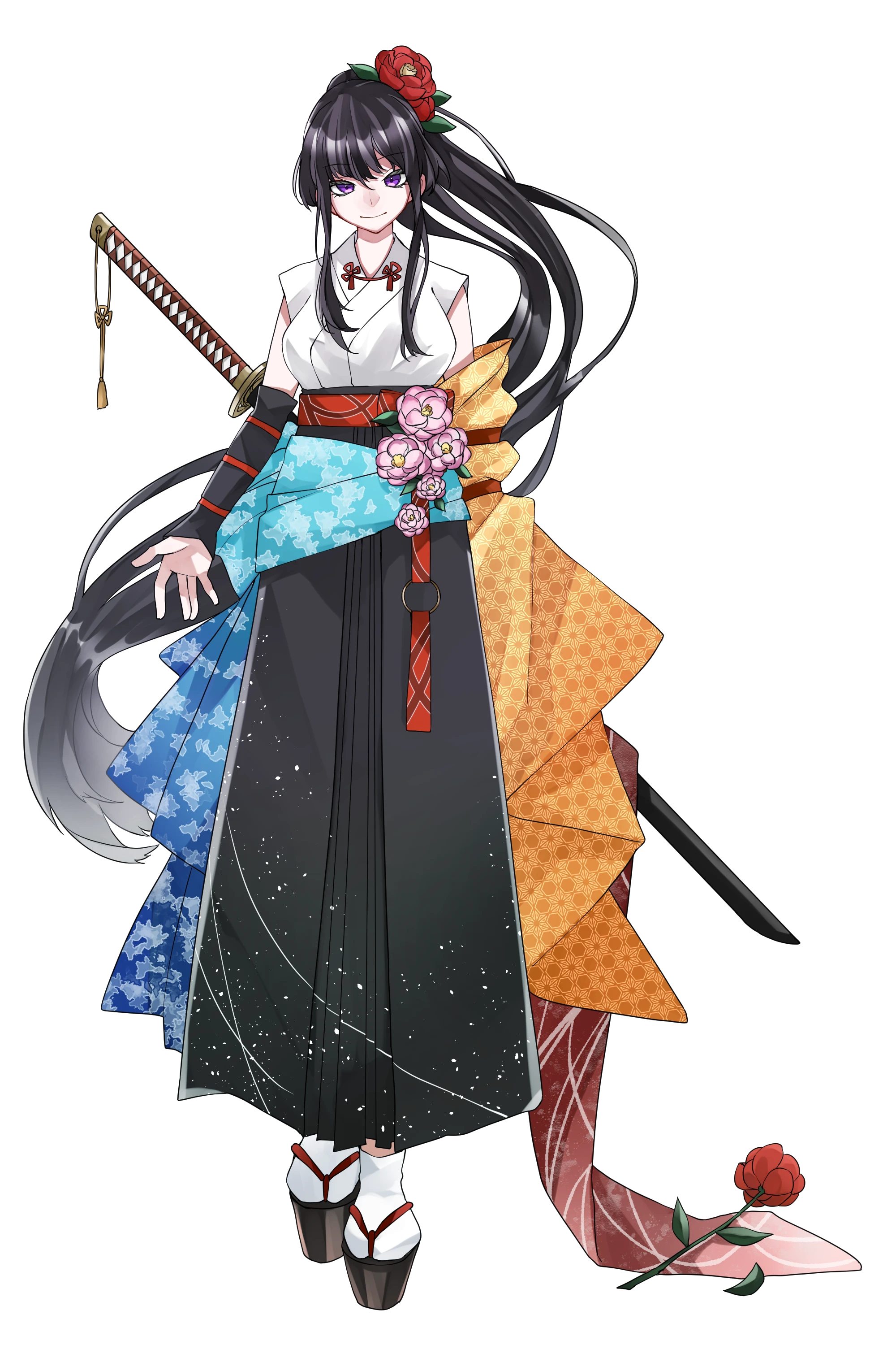 結んだ黒い長髪は、[異貌]により白髪へと変貌する。その際、角も成長を遂げる