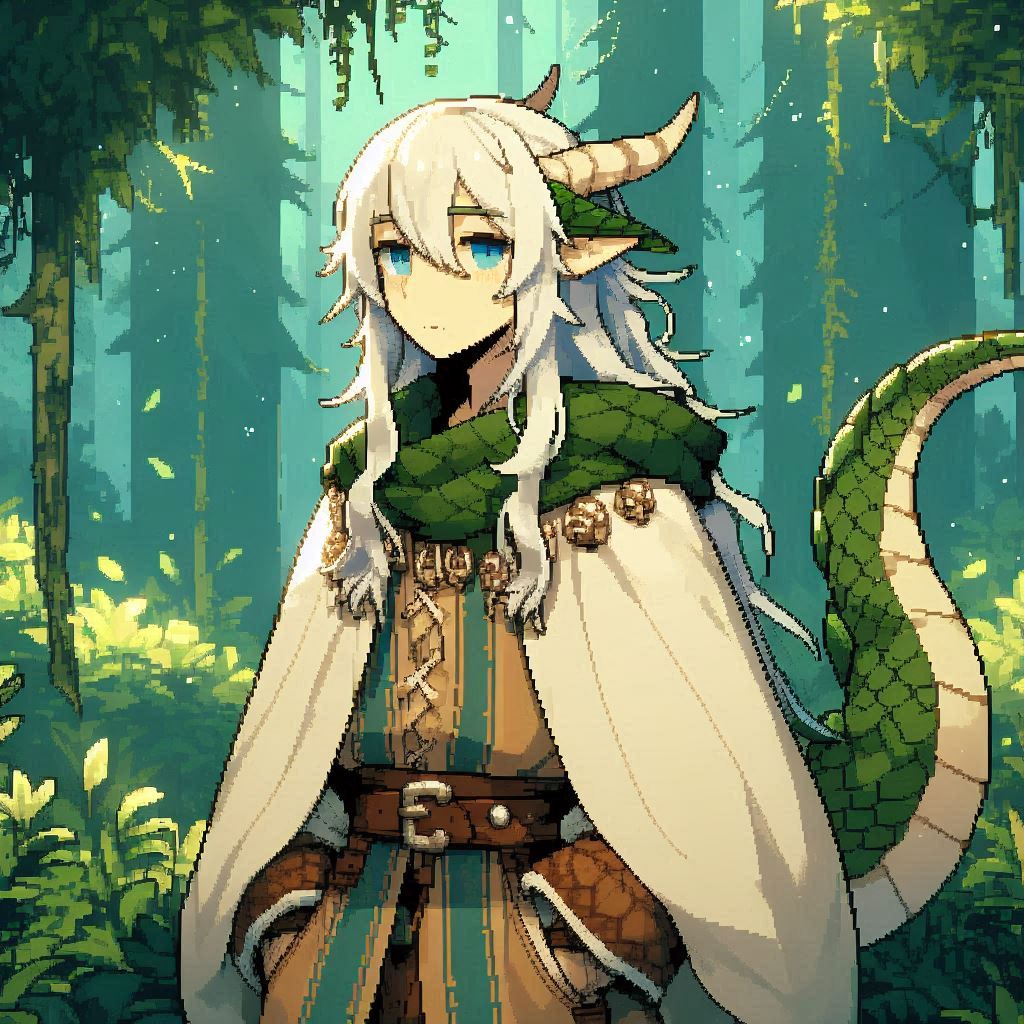 緑色の鱗のリルドラケン、他のリルドラケンよりはスリムに見える。