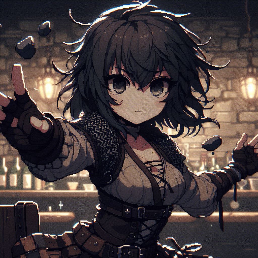 乱雑な黒髪のショートカット。真っ黒だけどきらきらした瞳。ドワーフらしい体格。
