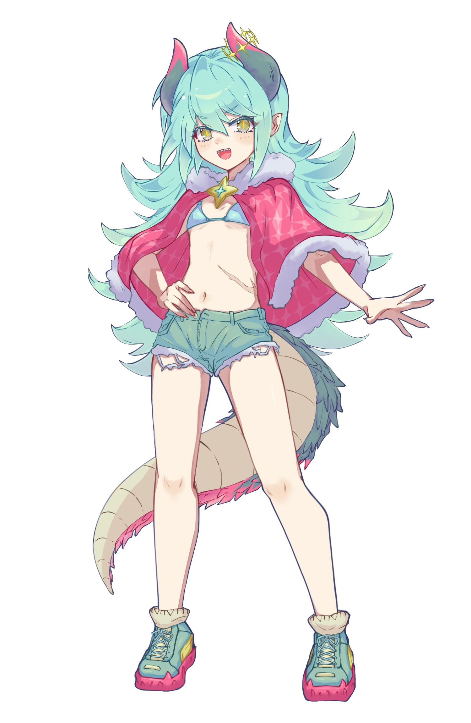 快活で自信に溢れた性格だが、ナチュラルに他種族を見下しており、それが言動の節々から垣間見える。これはドレイクという種族に対する誇りに起因するもので"ドレイクは強い。だから弱っちい奴らを守護らねばならぬ"という考えがあるから。傲慢と言われれば全くもってその通りだし、貴族的なノブレス・オブリージュの精神と言われればまあ、そうとも見える。そんな感じの子。