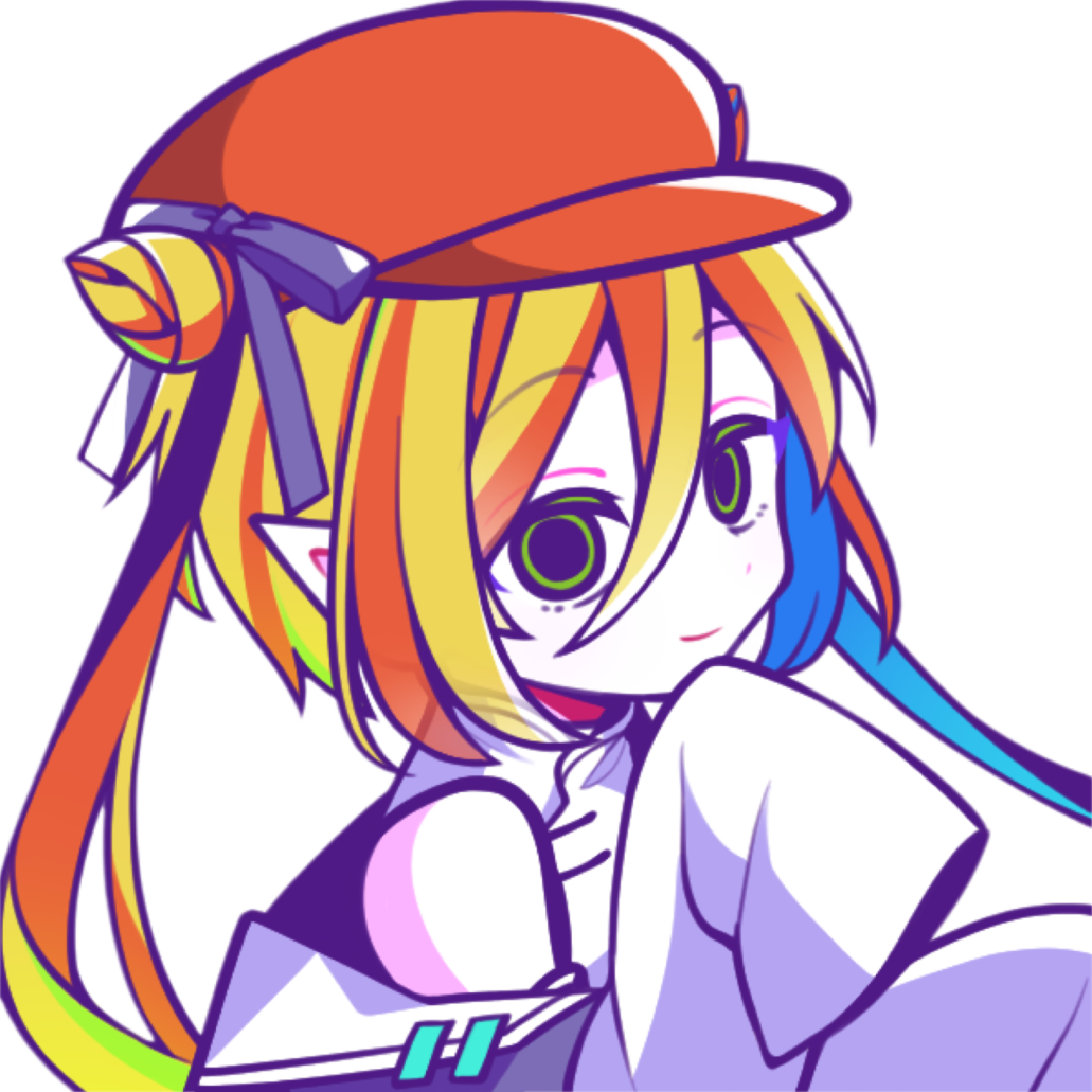 『メルナ・トレーニィ』。金髪ツインテールにハンチング帽と、神官とはまず思えないような格好をしたこの少女(41歳)は、エルフから生まれたナイトメアの放浪者である。