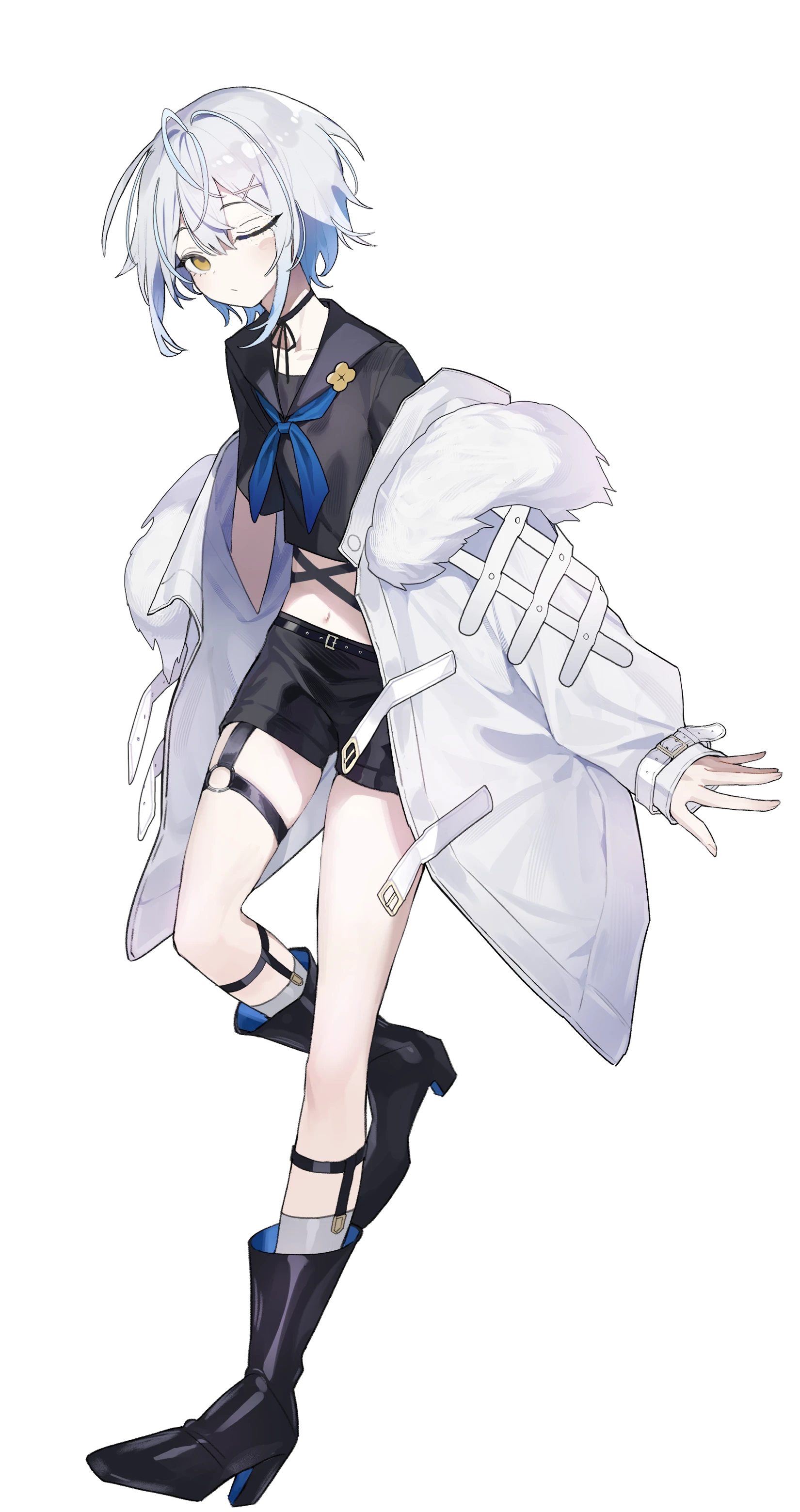 白髪、いつも片目を瞑ってる。