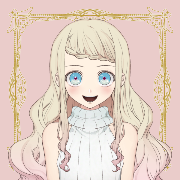 白に近いブロンズヘアと大きな碧眼が特徴的。
