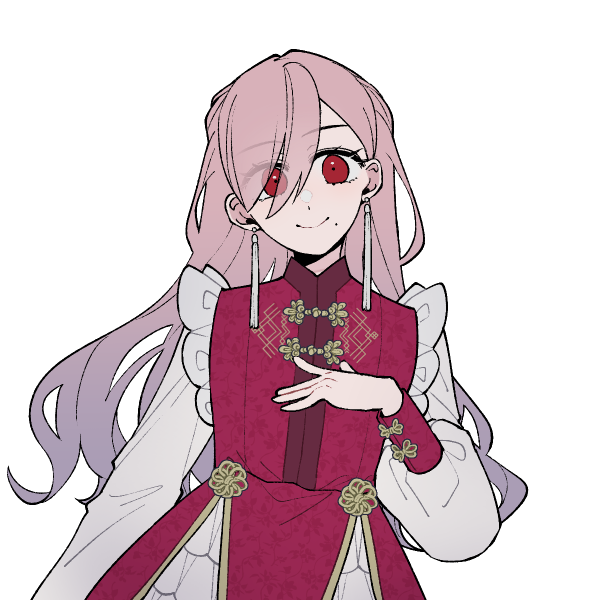 古めかしいが麗美な中華服を着た桜色の髪をした少女。お嬢様言葉で話し、客観的には天然のような振る舞いをする。