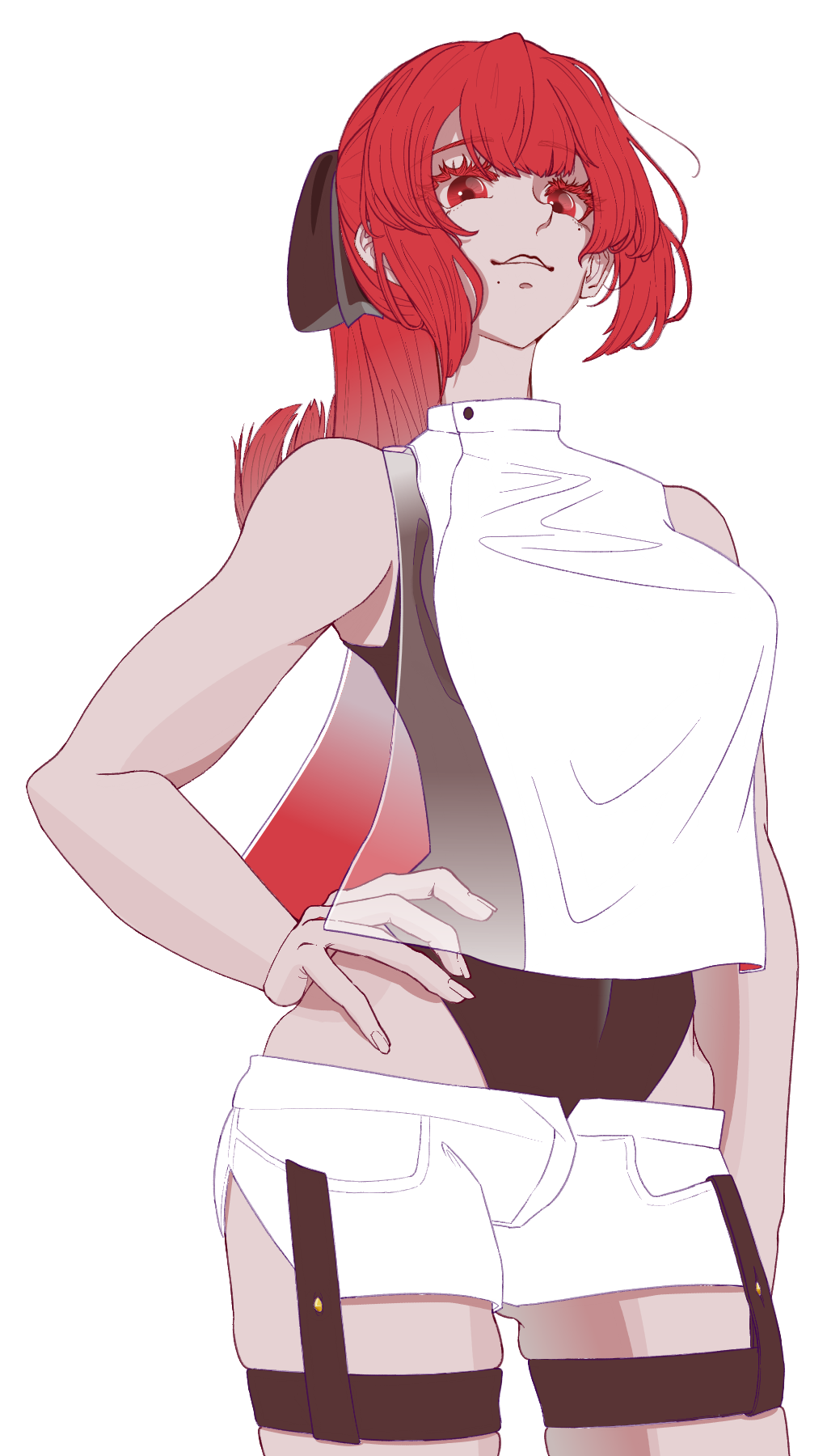 赤髪に黒のリボンを付けたポニーテールの女。元は容姿を整えていなかったものの、物資があるからか、それとも気が向いたからか、最近になって髪や服装を整えるようになった。
