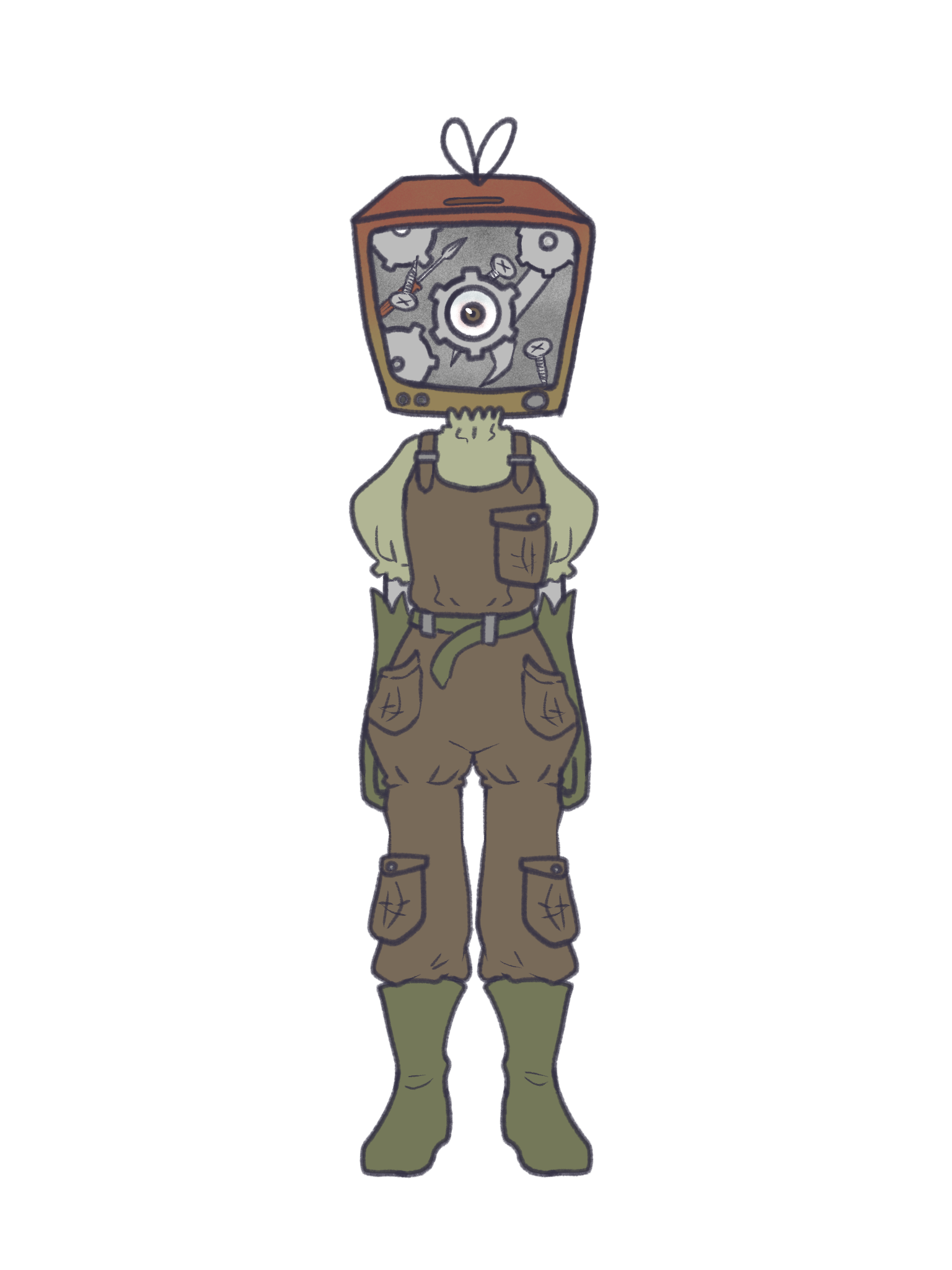 テレビの中に配線等はなく、専ら工具箱兼備品入れと化している。驚くなどの感情や、走るなどの行動によってモニター側にある上面が本人の意思とは関係なく開閉する。