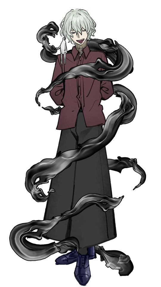 ◆見た目:本体は黒い靄。藁を蛇のように結ばれていたことから蛇のような見た目に。依り代として人形を用意し、その周りを飛んでいる。肩の白い奴?眷属です。